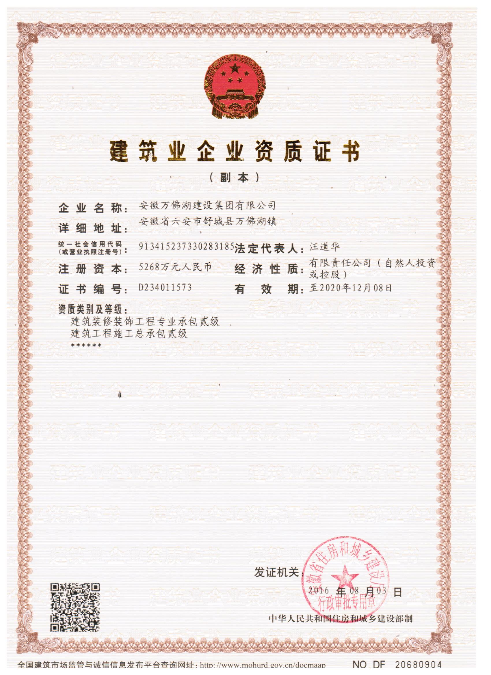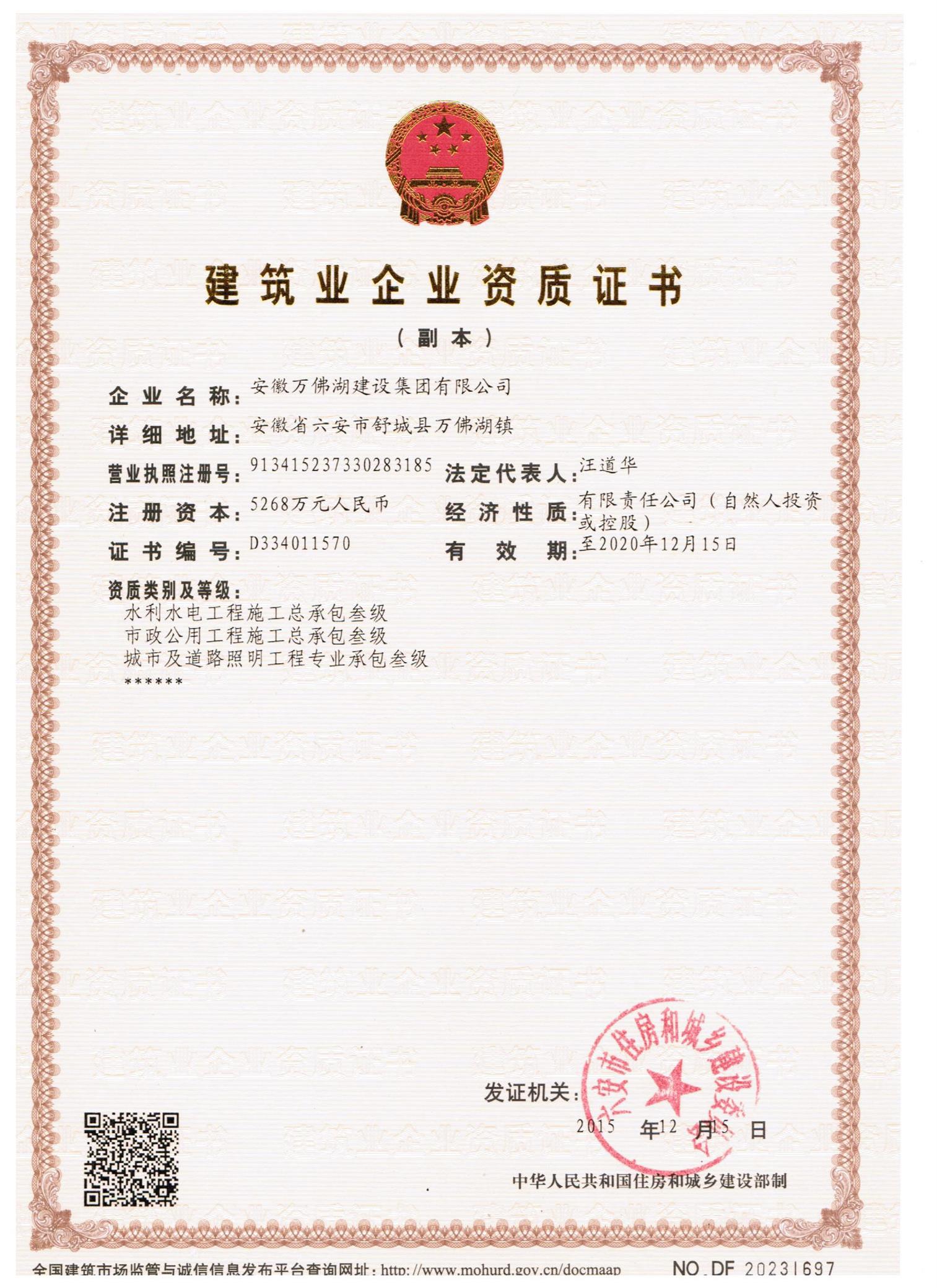 公司簡介 安徽萬佛湖建設(shè)集團有限公司成立于2001年8月,是舒城縣規(guī)上企業(yè),現(xiàn)有職工1600多人,注冊資本5268萬元,年實現(xiàn)產(chǎn)值5.45億元,年納稅2285萬元。集團旗下?lián)碛惺娉侨f佛湖建筑勞務(wù)有限公司、安徽龍舒房地產(chǎn)開發(fā)有限公司、安徽玖盛建設(shè)工程有限責任公司、舒城萬發(fā)建筑材料銷售有限公司四個子公司。內(nèi)設(shè)工經(jīng)部、財務(wù)部、法務(wù)部、項目管理部、綜合辦公室、檔案室六個職能部室;成立了安全生產(chǎn)、技術(shù)質(zhì)量、環(huán)境保護、合同管理和愛心活動五個領(lǐng)導(dǎo)小組;設(shè)立了公司黨支部、工會和關(guān)工委三個黨群組織。公司經(jīng)營資質(zhì):房屋建筑工程施工總承包壹級、建...
